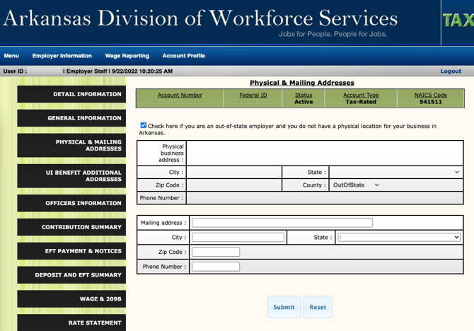 2) Employer Information → Physical & Mailing address