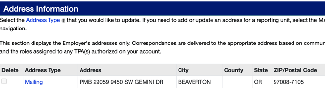 2) Select “Mailing Address” on the left-hand menu under “Manage Employer Information”