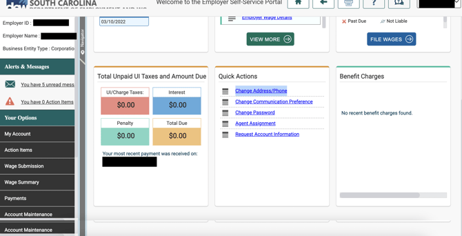 1) Log into the South Carolina State Unemployment Insurance Tax System